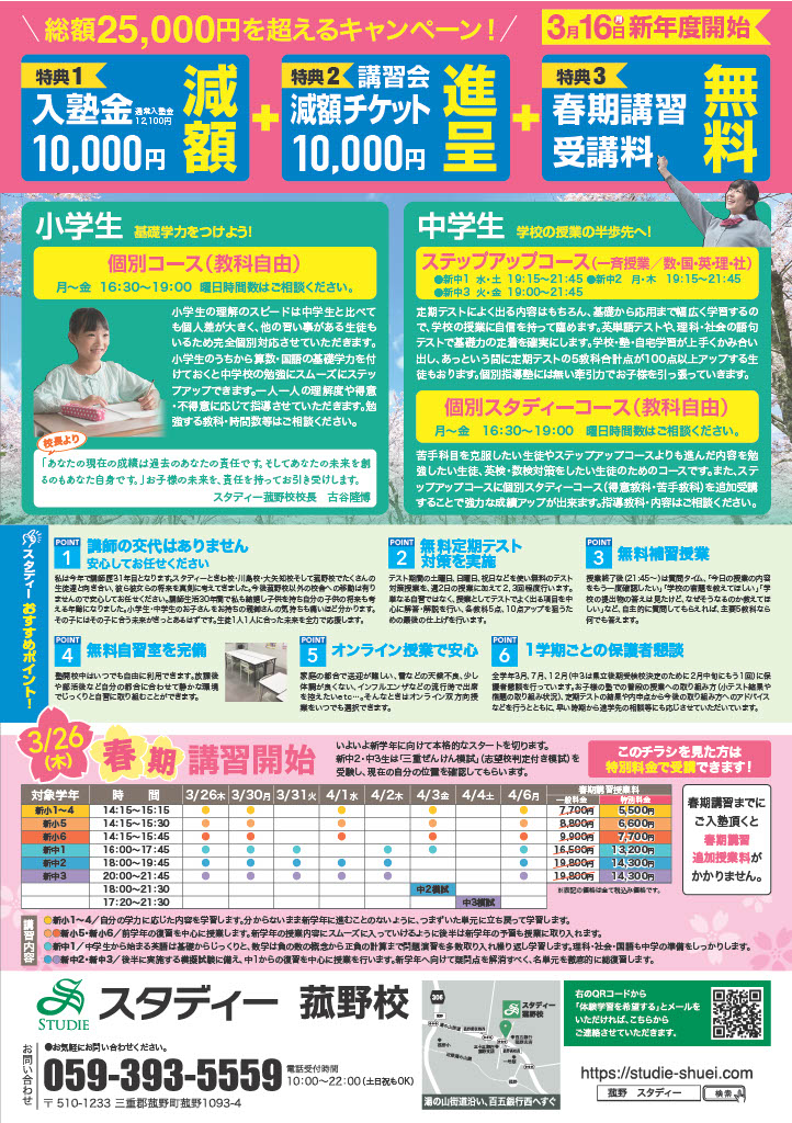 スタディー菰野校 3月16日(月)新年度開始!!