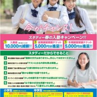 スタディーではそんなご家庭に少しでもお得に入塾いただける「春の入塾キャンペーン」を開催中です。
