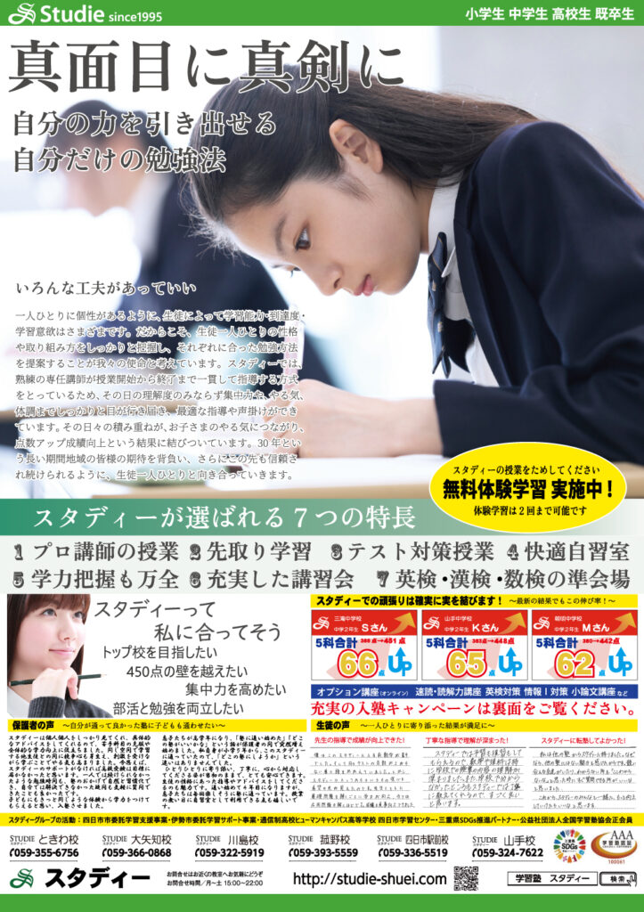 新学期生募集中! 2026年02月15日 スタディーでは現在新年度の入塾生を募集しています。 各校定員がございますので、お早めにご検討ください。 お知らせ 最新の関連記事 新学期生募集中! 2026年02月15日 春期講習受付開始! 2026年02月01日 冬期講習2025 受講生受付中! 2025年11月10日 表彰されました! 2025年11月07日 ツイート シェア Google+1 はてブ pocket LINE
